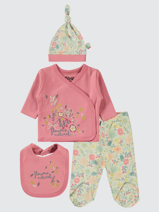 Civil baby natural flowers baskılı 4'li zıbın takımları - pembe
