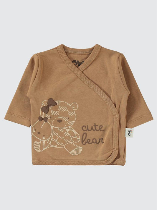 Civil baby ayıcık baskılı 0-1 ay zıbın takımları - kahverengi