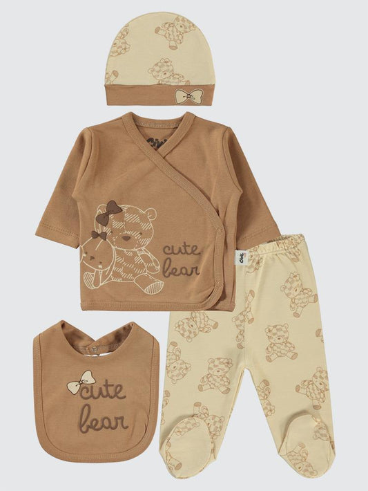 Civil baby cute bear baskılı 4'lü zıbın takımları - kahverengi