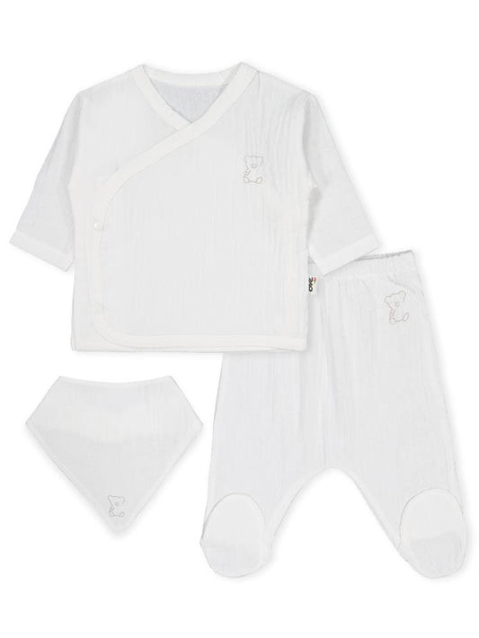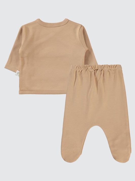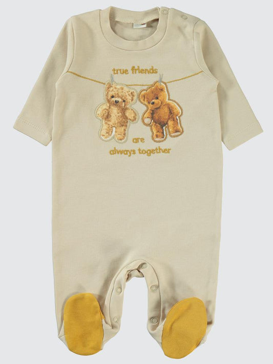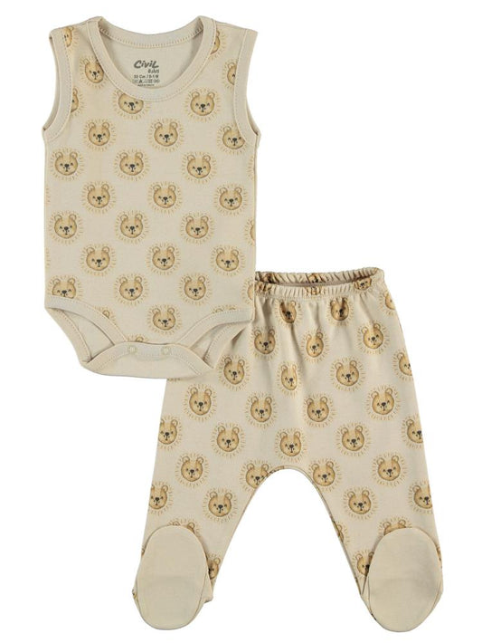 Civil baby ayıcık baskılı zıbın takımları - ekru