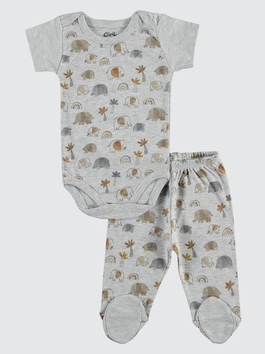 Civil baby araba baskılı 0-1 ay zıbın takımları - ekru