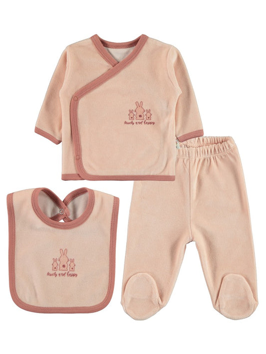Civil baby 3'lü tavşanlar baskılı zıbın takımları - pembe