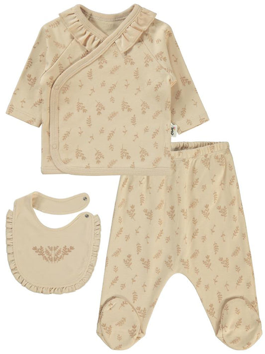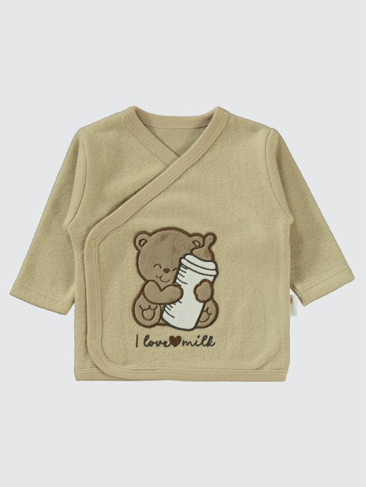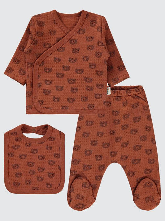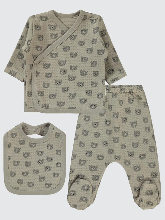 Civil baby kabartmalı ayıcık baskılı 0-1 ay zıbın takımları - bej
