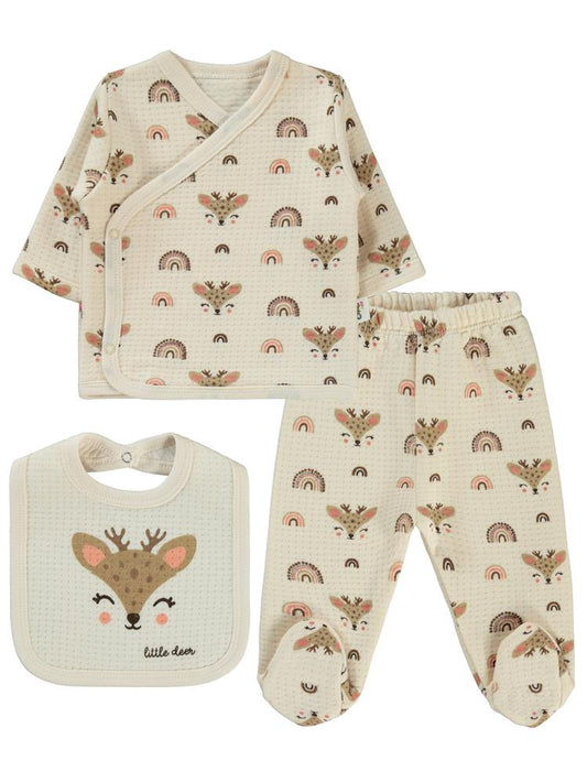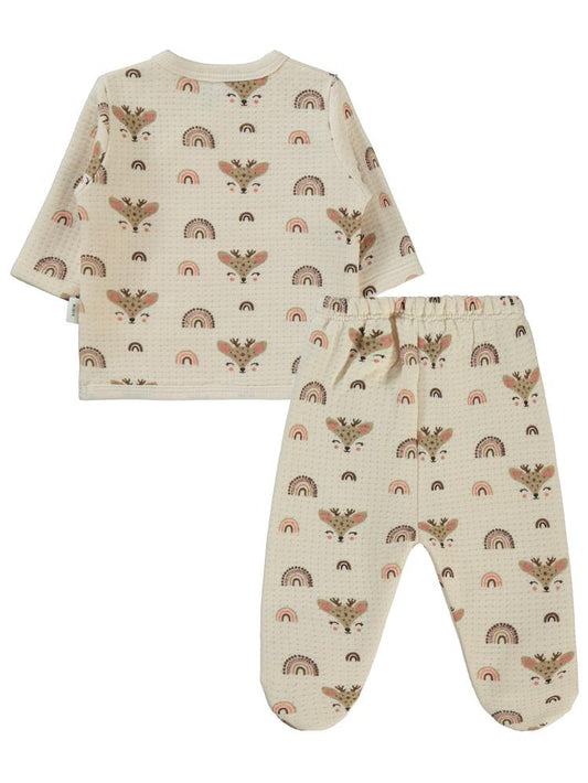 Civil baby geyik baskılı zıbın takımları - fil dişi