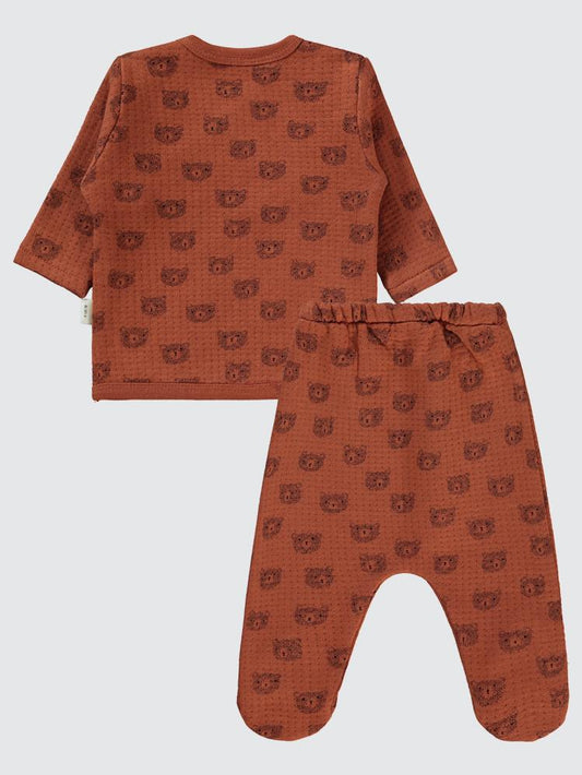 Civil baby koala empirme baskılı zıbın takımları - kahverengi