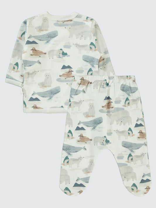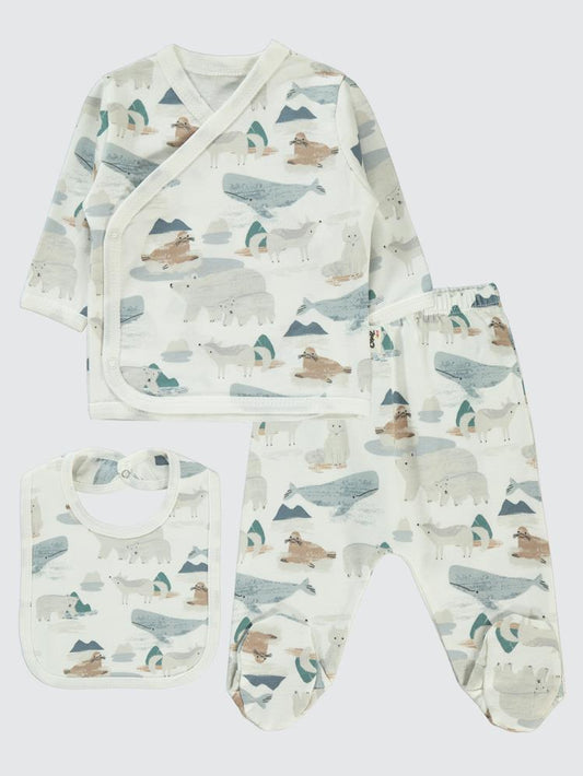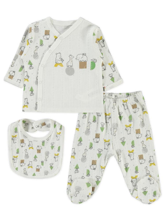 Civil baby sevimli geometrik hayvanlar emp. baskılı zıbın takımları - ekru