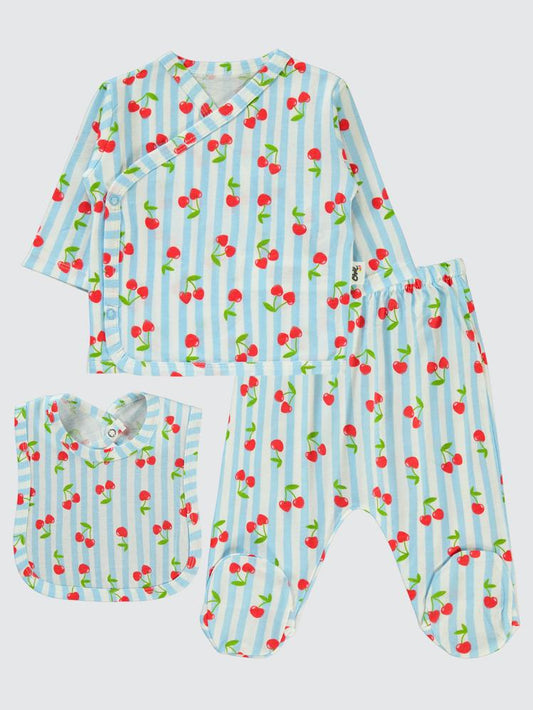 Civil baby çizgili kiraz baskılı 0-1 ay zıbın takımları - mavi