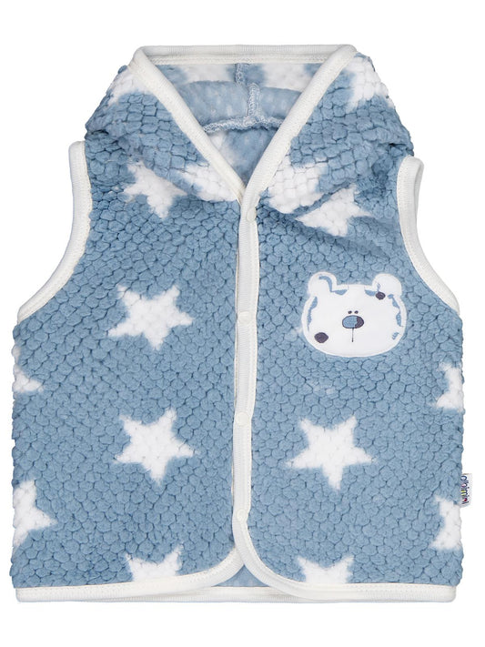 Minidamla ayı nakışlı kapşonlu 1-9 ay yelek - mavi