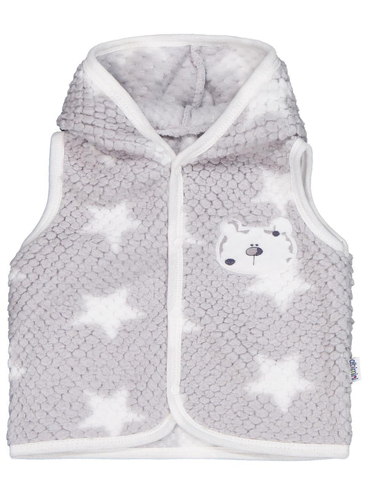 Minidamla ayı nakışlı kapşonlu 1-9 ay yelek - gri