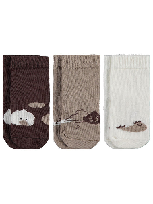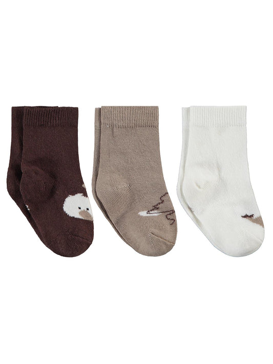 Civil baby nakışlı kıvrık havlu 6-18 ay 3'lü bebek erkek çorap set