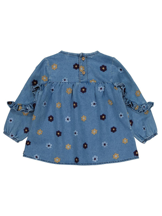Civil baby çiçek nakışlı 6-18 ay elbise - mavi