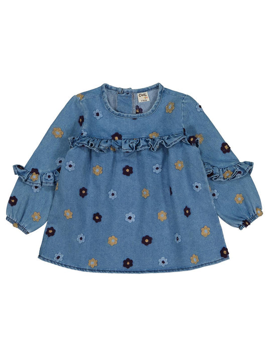 Civil baby çiçek nakışlı 6-18 ay gömlek - mavi