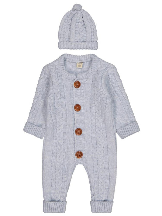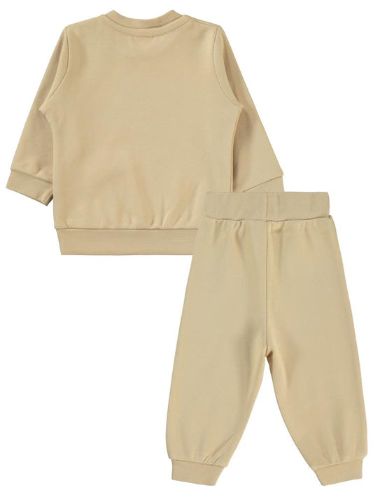 Bizizo blue baskılı yakası düğmeli 9-24 ay takım - bej