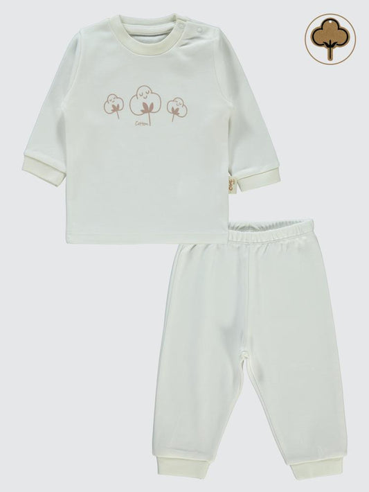 Civil baby organic pamuklu omuzdan patlı 1-9 ay pijama takımı - ekru
