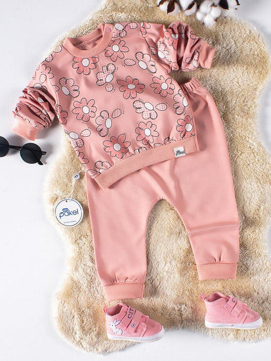 Mini pakel çiçek baskılı omuzu çıtçıtlı 2'li 6-18 ay takım - pembe