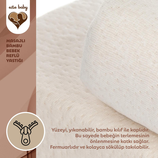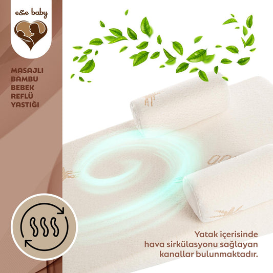 • E&e Baby Masajlı Bambu Bebek Reflü Yatağı Özellikleri • Karın bölgesindeki özel tasarımı sayesinde bebeğin karnına masaj yaparak kolik...