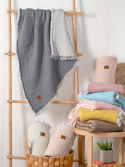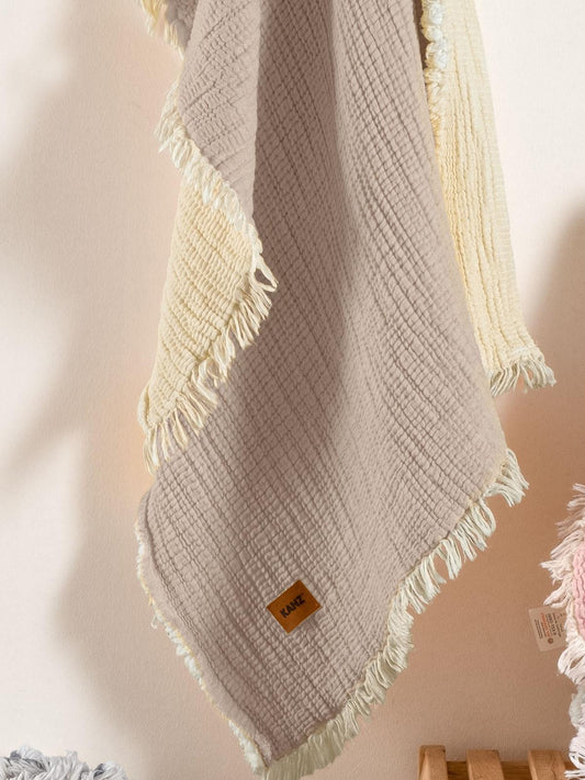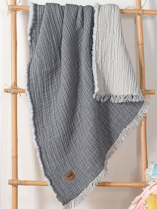 Kanz 5 kat dolgulu müslin bebek örtüsü 90x110 cm - gri