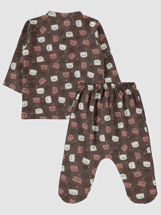 Civil baby ayıcık baskılı 1-6 ay pijama takımı - kahverengi