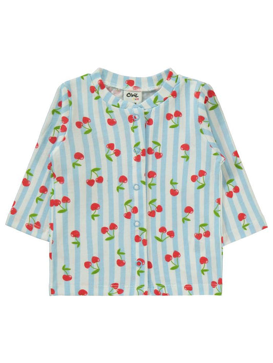 Civil baby çizgili kiraz baskılı 1-6 ay pijama takımı - mavi