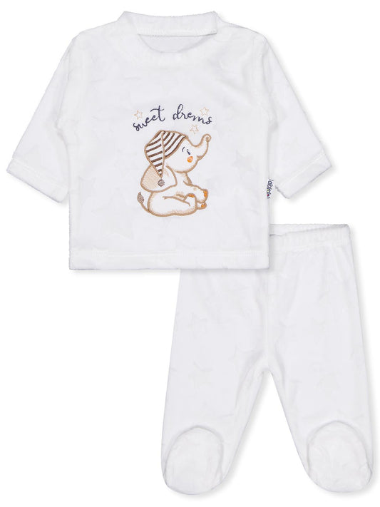 Minidamla filli nakış patikli 2li 1-6 ay pijama takımı - ekru
