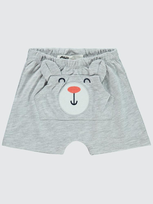 Civil baby ayı surat nakış cepli 6-18 ay erkek şort - gri