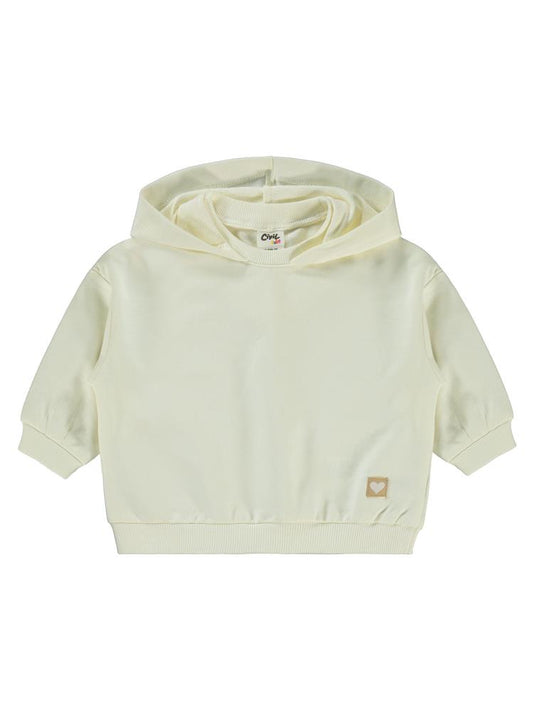 Civil baby civil basic kalp etiketli kapüşonlu 6-18 ay sweatshirt - ekru
