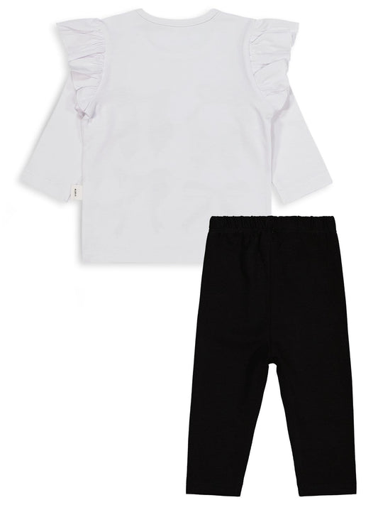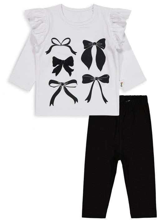 Civil baby fiyonk baskılı 6-18 ay takım - beyaz