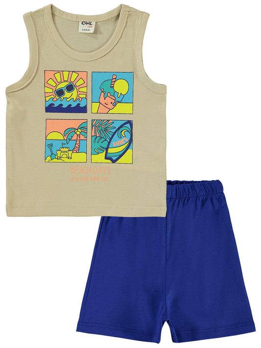 Civil baby beach days baskılı 6-18 ay takım - bebe mavi