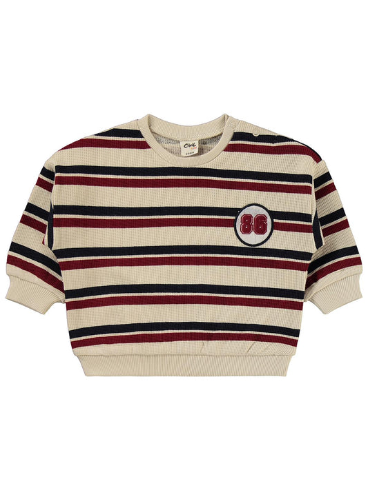 Civil baby çizgili nakışlı 6-18 ay takım - bej