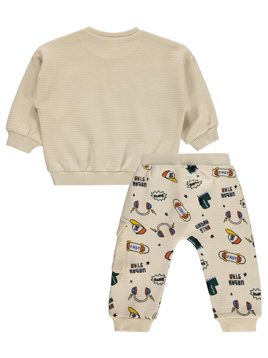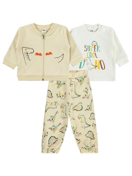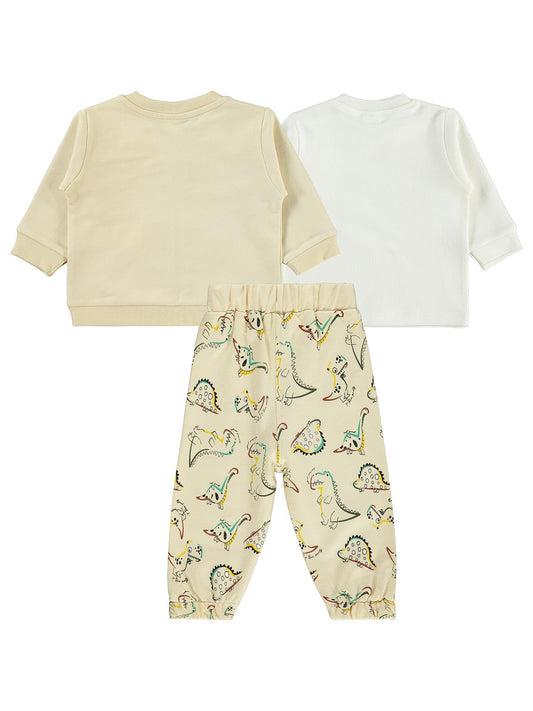 Civil baby dinozor nakışlı 6-18 ay takım - bej