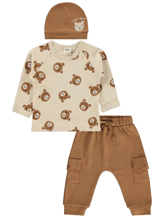 Civil baby ayıcık empirme şapkalı 6-18 ay takım - bej