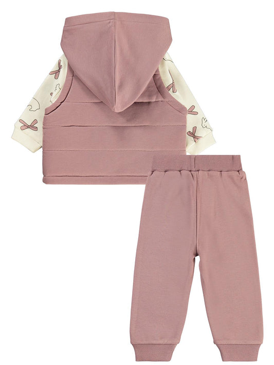 Kumru zincir desenli fistolu 2 li 6-18 ay takım - pembe