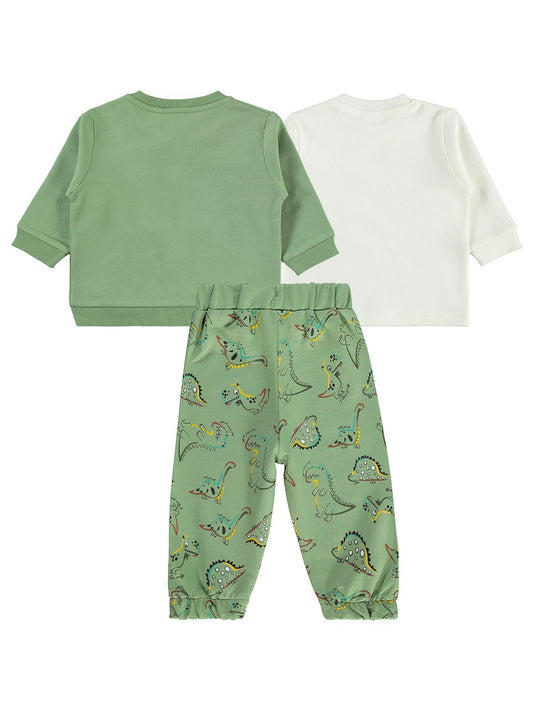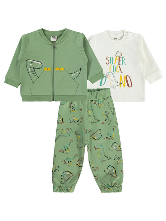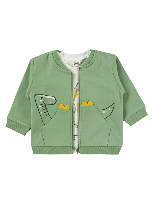 Civil baby dıno nakışlı hırkalı 6-18 ay takım - haki