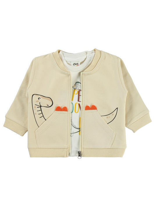 Civil baby dıno nakışlı hırkalı 6-18 ay takım - bej