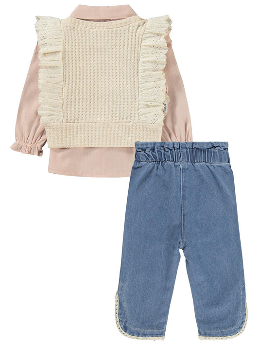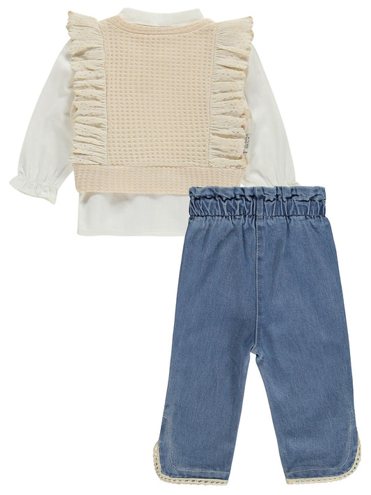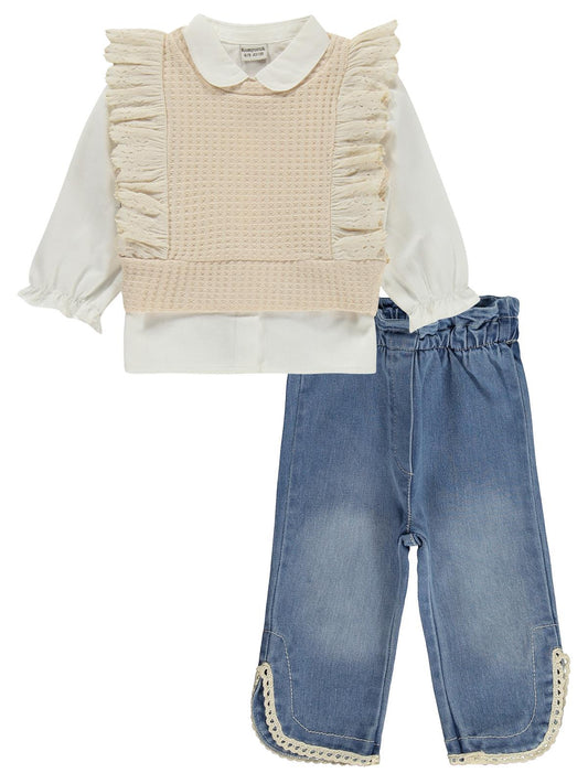 Kumru fırfır süeterli 3 lü kot 6-18 ay takım - bej