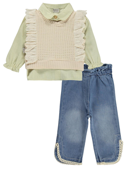 Kumru fırfır süeterli 3 lü kot 6-18 ay takım - yeşil
