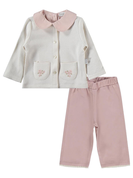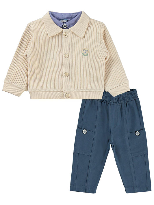 Kumru hırka nakışlı gömlek pantolon 6-18 ay takım - bej