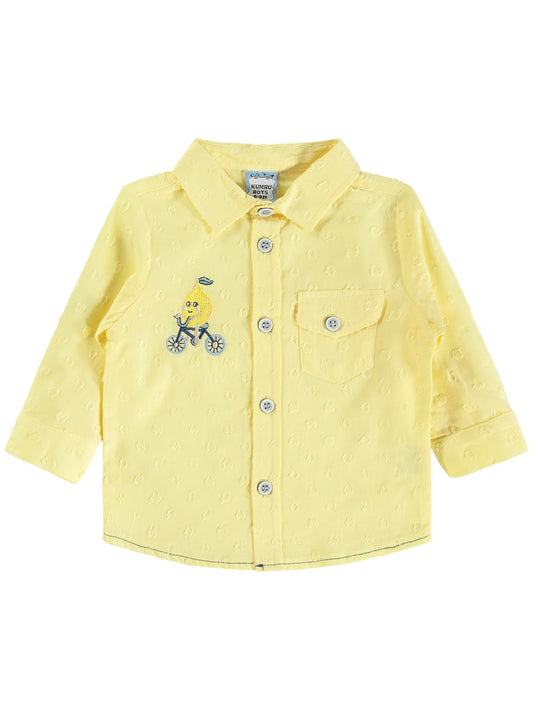 Kumru hırka nakışlı gömlek pantolon 6-18 ay takım - sarı