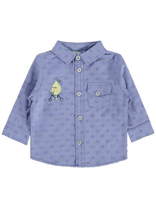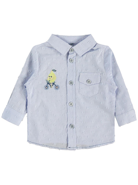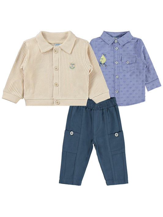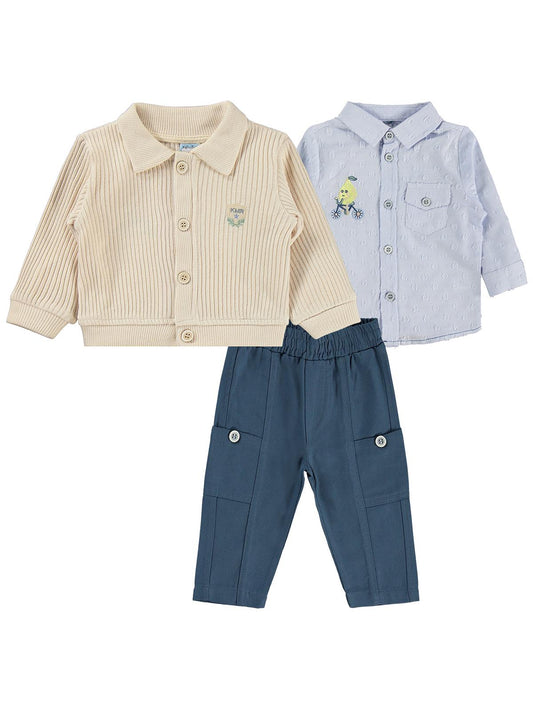 Kumru hırka nakışlı gömlek pantolon 6-18 ay takım - mavi
