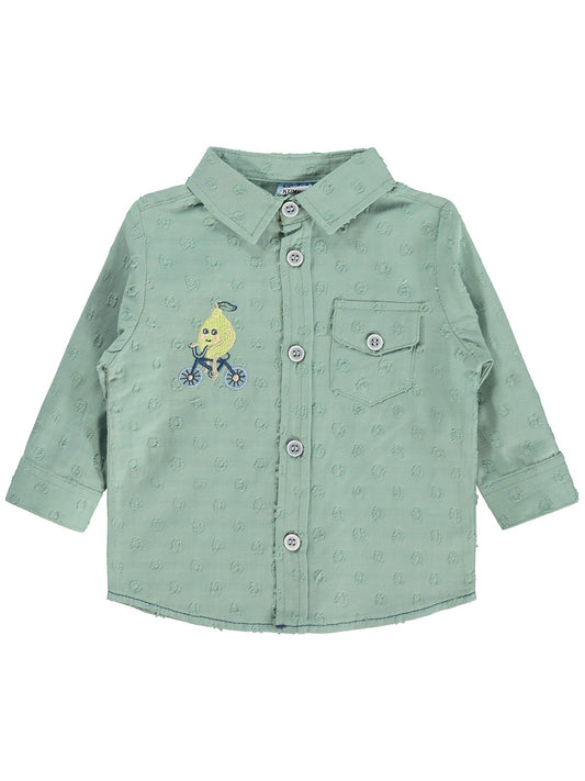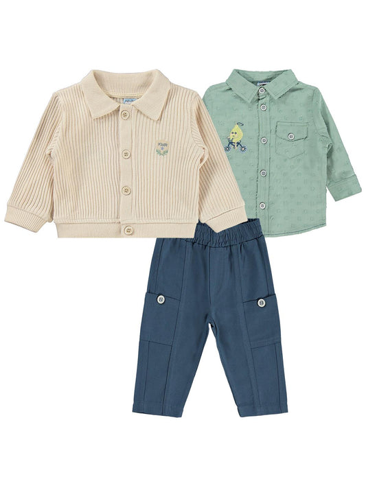 Kumru hırka nakışlı gömlek pantolon 6-18 ay takım - yeşil