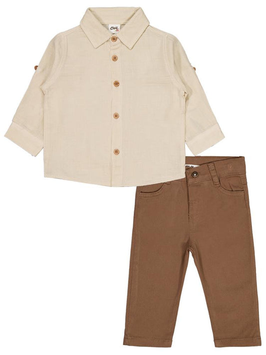 • Civil baby gömlekli 6-18 ay takım - bej