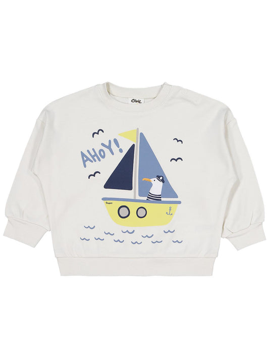 Civil baby yelken baskılı 6-18 ay takım - beyaz