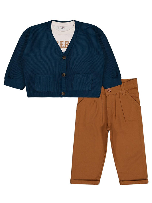 Civil baby v yaka hırka 3'lü set 6-18 ay takım - yeşil