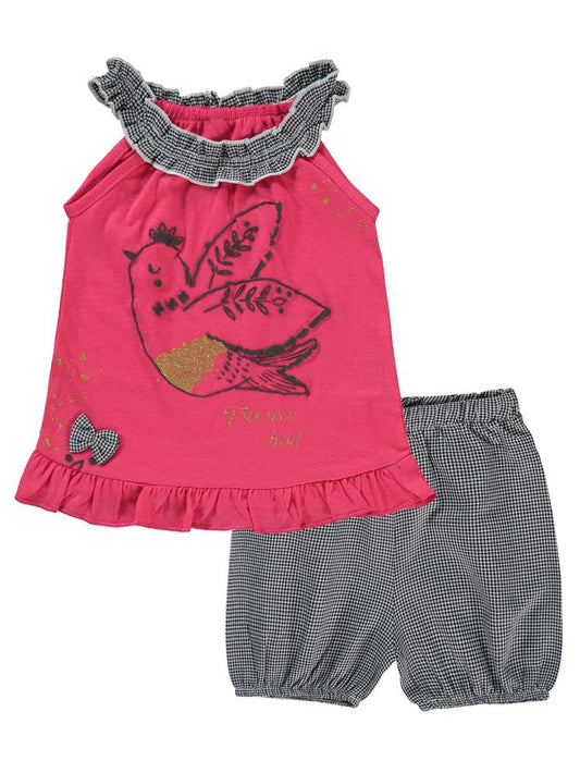Kumru kuş baskılı 6-18 ay takım - pudra