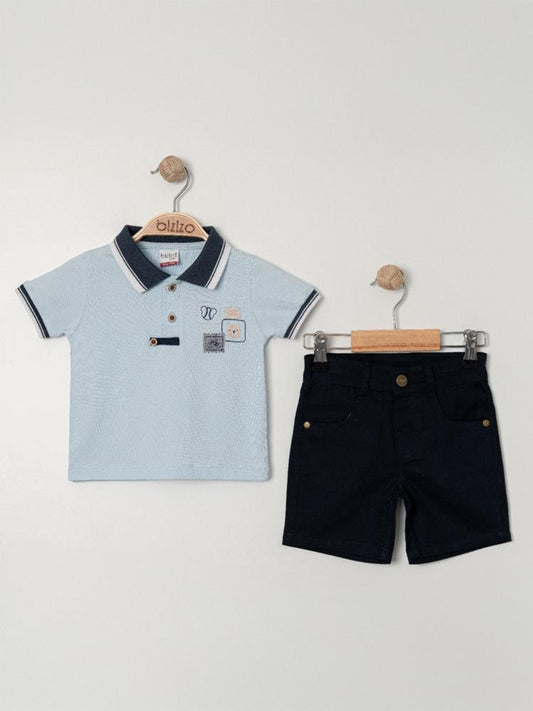 Bizizo bisiklet nakışlı polo yaka 9-24 ay takım - mavi