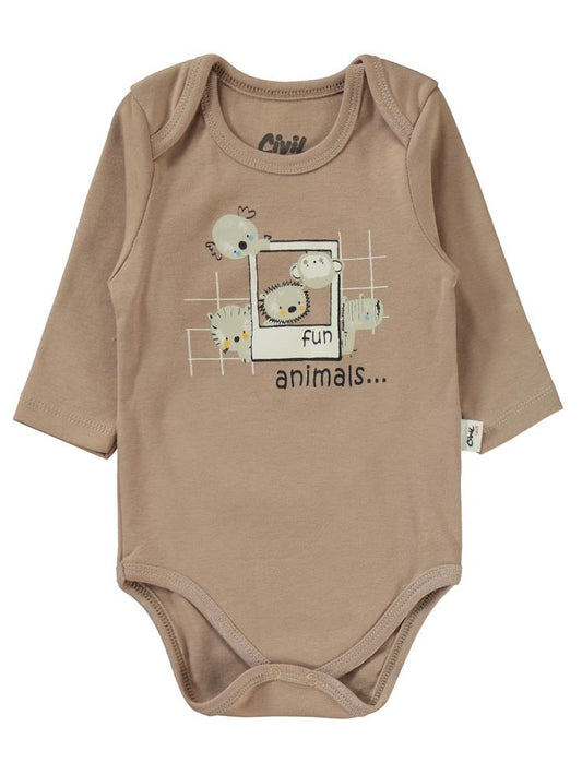 Civil baby fun animals baskılı 3'lü 6-18 takım - kahve