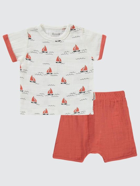 Miniworld baskılı müslin şortlu 6-18 ay takım - turuncu