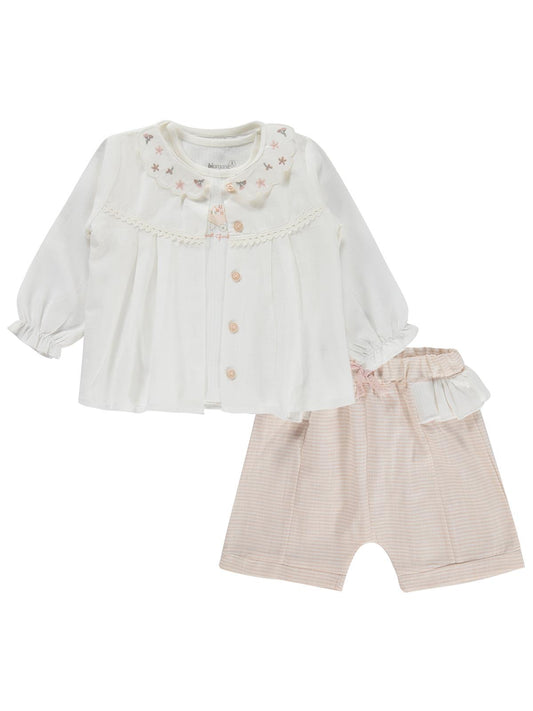 Civil baby brode süprem şortlu 6-18 ay takım - ekru