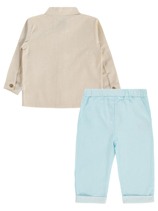 Pierre cardin retro toyz baskılı cepli 3-12 ay takım - ekru