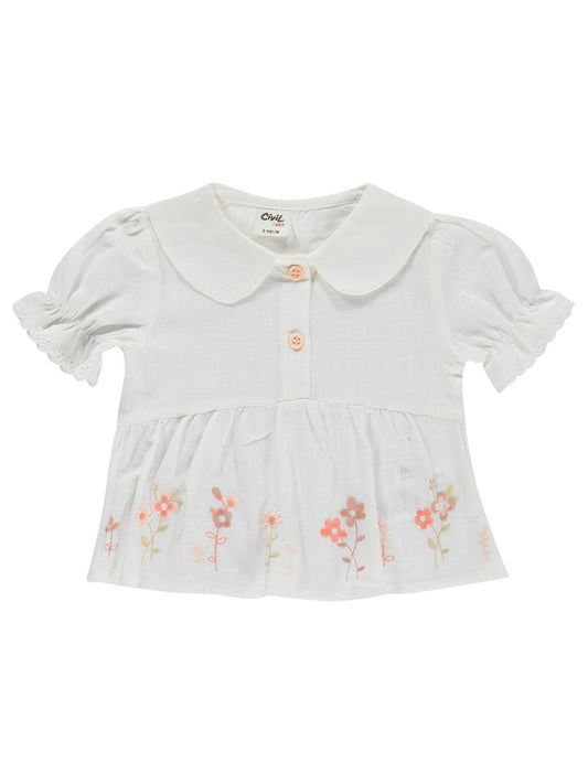 Civil baby etek ucu çiçek nakışlı 6-18 ay takım - ekru